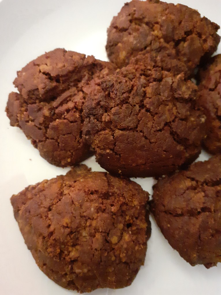 Faire des petites boules à la main ou avec 2 cuillères. Les aplatir et les mettre sur une plaque avec du papier sulfurisé. Enfourner 10 à 15 minutes à 180°C.
